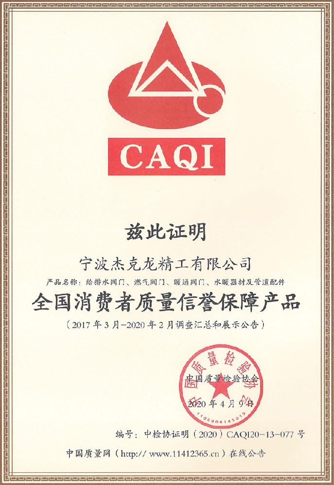 2018年11月8日,杰克龍精工公司正式獲得由浙江制造國際認證聯盟和杭州漢德質量認證服務有限公司聯合簽發的《浙江制造認證證書》。